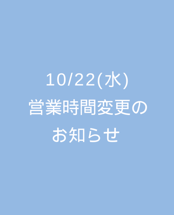 10/22(水)営業時間変更のお知らせ