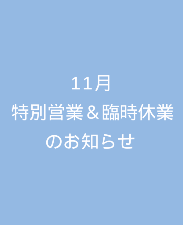 11月24日(月)特別営業 & 25日(火)臨時休業のお知らせ