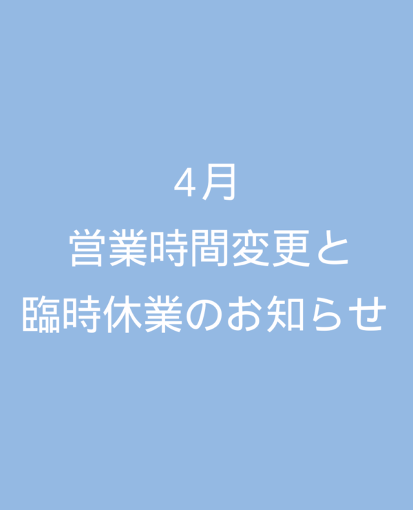 4月営業時間変更と臨時休業のお知らせ